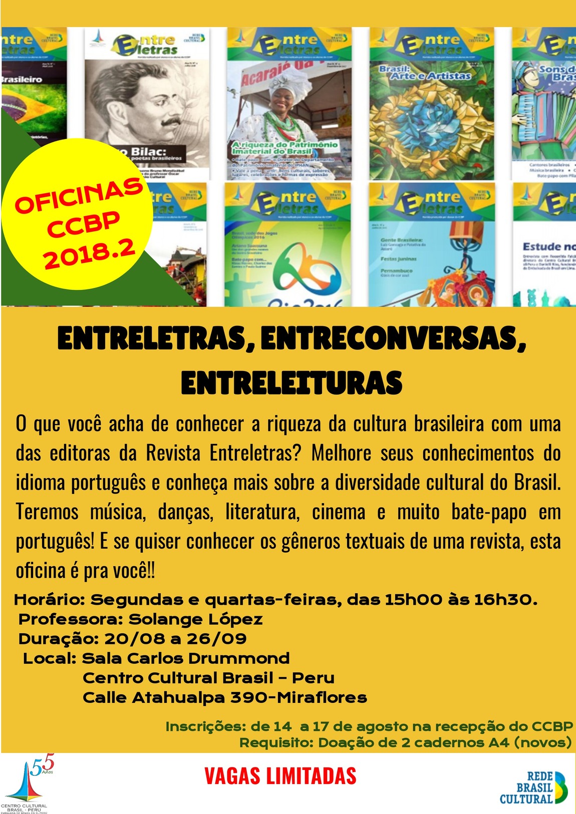 El taller "Tagarelando" es dedicado a todos los interesados en practicar de forma oral la lengua portuguesa. Destinado a alumnos desde el nivel básico, la idea es soltar la voz, vocabulário, pronunciación, tono de voz y expresión corporal.