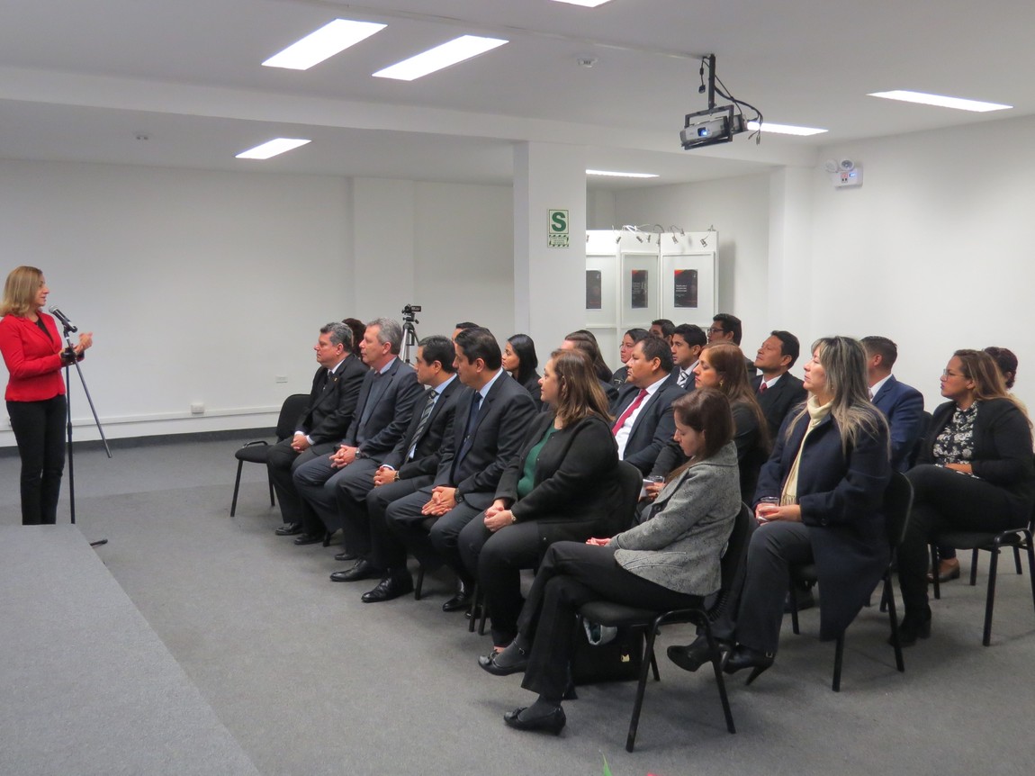 Autoridades presentes: Isabel Balué - Adida da Agência Brasileira de Inteligência (ABIN); Comandante Miguel Palma - Investigador Criminal e Analista de Inteligência (PNP); Coronel Oscar Rolando Serván López - Chefe da Direção de Inteligência Antidrogas (Diviad) da Dirandro; Delegado Marcos Farias - Adido da Polícia Federal do Brasil (PF); Delegado Celso Gabriel Castro de Lucena - Adido Adjunto da Polícia Federal do Brasil (PF).