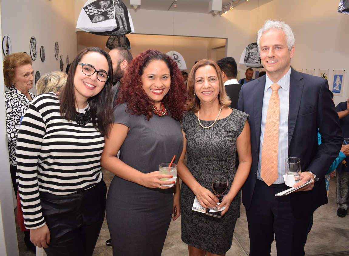 Artista y Profesora de arte Sra. Olga Flores (PUCP), Sra. Rozenilda Falcão - Directora del Centro Cultural Brasil-Perú (CCBP), Sra. Raquel Pires-Secretaria del Sector Cultural de la Embajada de Brasil en Lima y el Ministro Sr. Elio Cardoso.