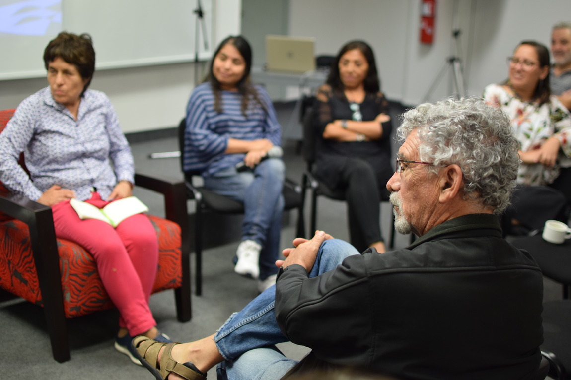 Violeta Barrientos iniciando la Ronda de conversa con los invitados y algunos de los participantes.
