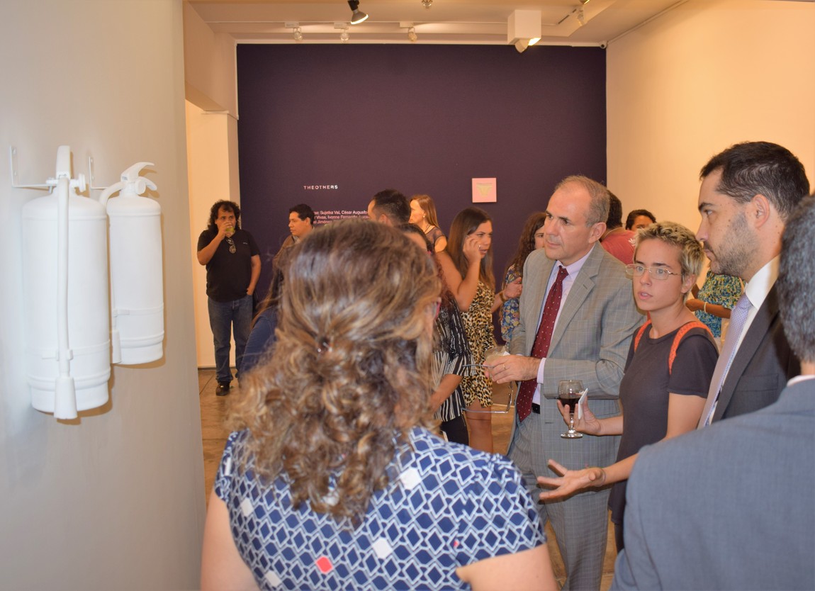 Artistas de las obras acompañados del Consejero de la Embajada de Brasil Sr. Marfil, la Responsable del Sector Cultural Sra. Raquel Pires, el Jefe Leonardo Wester, el curador de la muestra Emilio Vargas juntamente con la Directora Sra.Rozenilda Falcão