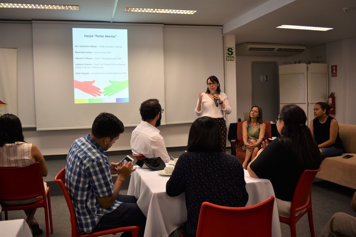 La coordinadora del Proyecto Portas Abertas Sra. Janayna Guerra dandoles la bienvenida.