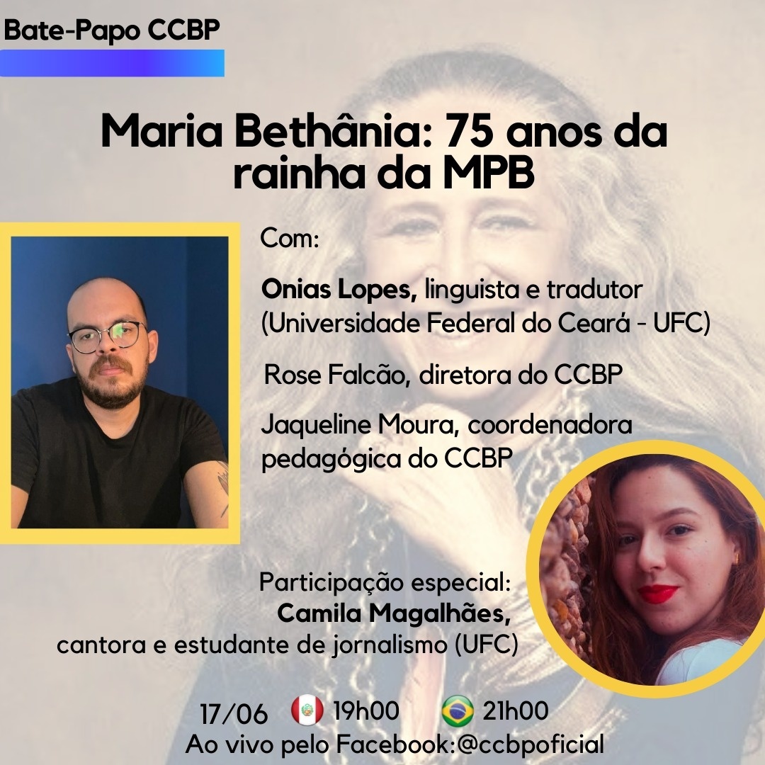 Contaremos com a participação de Onias Lopes, linguista e tradutor (Universidade Federal do Ceará - UFC), e Camila Magalhães, cantora e estudante de jornalismo da UFC.