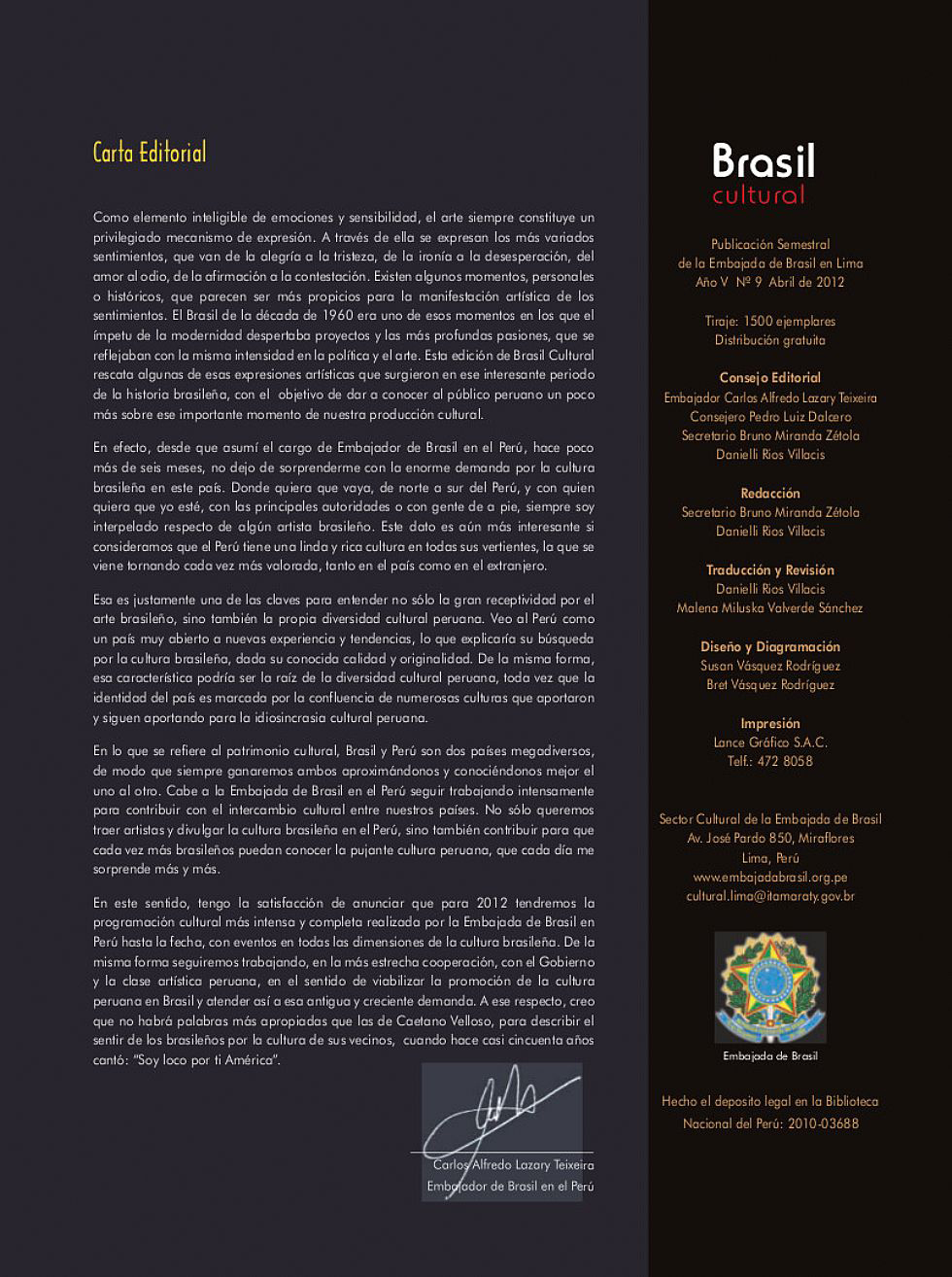 Brasil Cultural - Año V, N° 9, Abril de 2012 •  01-04-2012  •  N° 9, Abril de 2012 •  N° 9 •  Lima - Perú