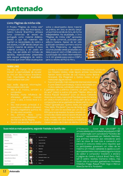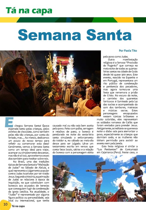 Tags: * Semana Santa Minas Gerais Dois amigos, um século de música * Especial sobre as tradições no Brasil e no Peru (pg. 10) * Faça uma viagem pelos atrativos turísticos da região (pg. 9) * Caetano Veloso e Gilberto Gil juntos no mesmo cenário (pg. 13)
