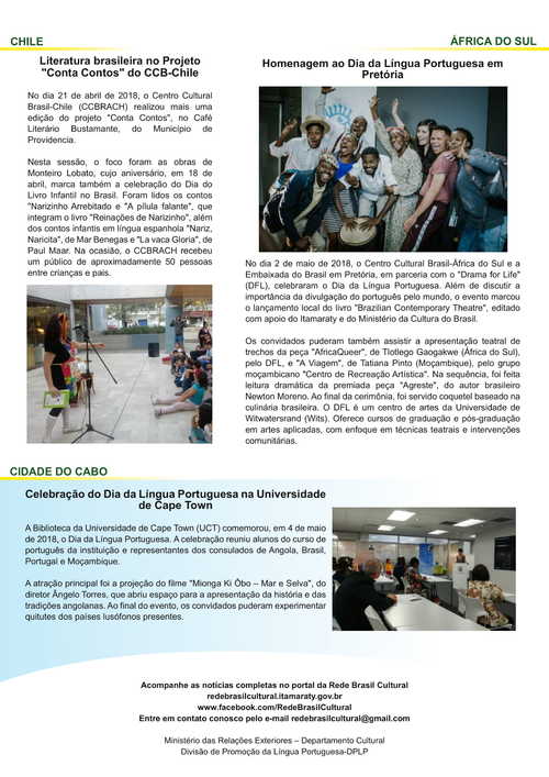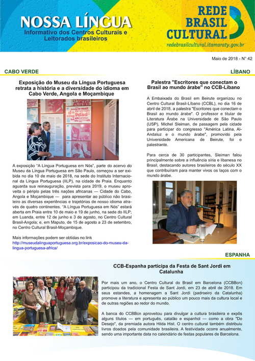 Tags: *Exposição do Museu da Língua Portuguesa retrata a história e a diversidade do idioma em *Cabo Verde, Angola e Moçambique *Palestra "Escritores que conectam o Brasil ao mundo árabe" no CCB-Líbano *CCB-Espanha participa da Festa de Sant Jordi em Catalunh