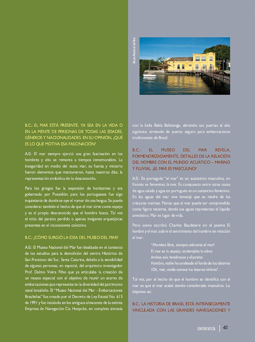 Tags: La presente edición de la Revista Brasil Cultural está dedicada al mar. "El mar, misterioso mar, que viene del horizonte...", de donde proviene la vida, pero que sepultó tantas almas desde tiempos inmemorables.